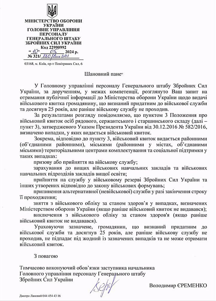Военный билет не выдается